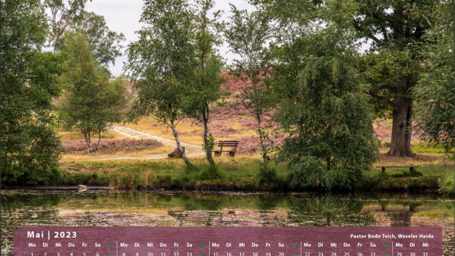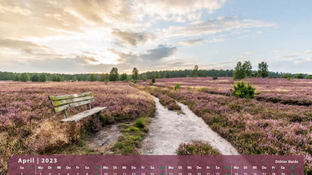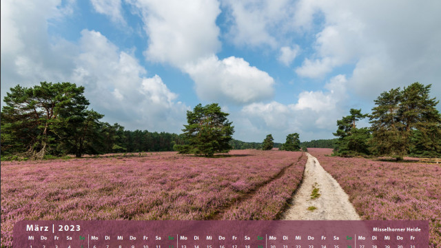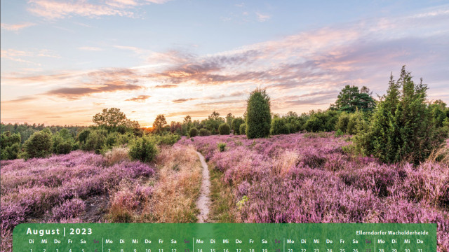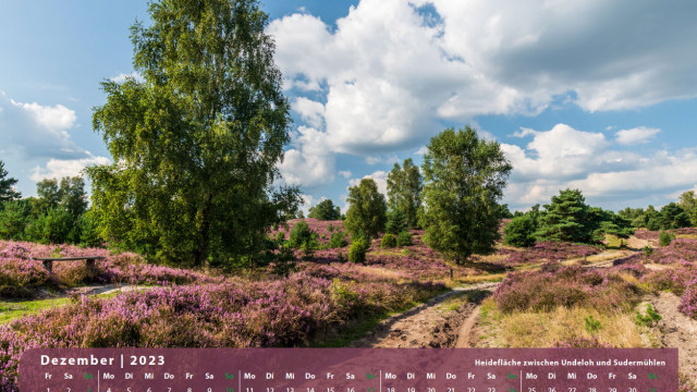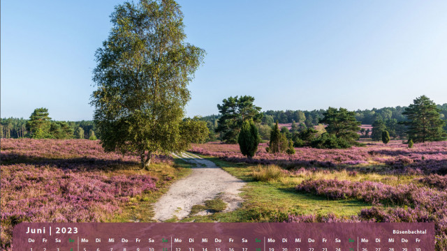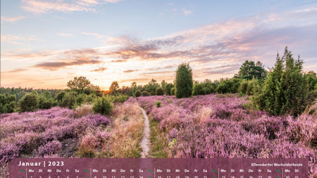 Der Klassiker für den Freund der Lüneburger Heide. 13 Motive mit der blühenden Heidelandschaft begleitet Sie durch das Jahr 2023.